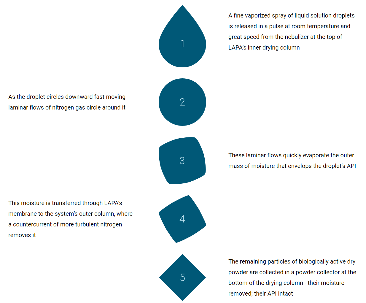 The freeze-drying technique for drugs, established and developed since many decades, still has only succeeded in very limited trials to generate dry mRNA/LNP – and the product still requires special handling. Another technique gaining ground in pharmaceutical processing is spray-drying by heating – but there, no known attempts have succeeded in generating dry material from mRNA/LNP. Hence, the LaminarPace ability to dry LNP formulations may be of great importance.